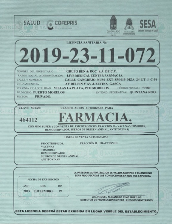 Sanitary License COFEPRIS